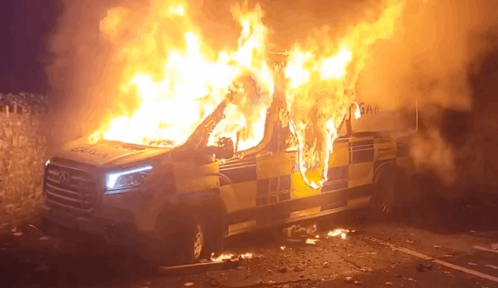 Police Van Torched Amid Citywest Migrant Protest in Dublin
