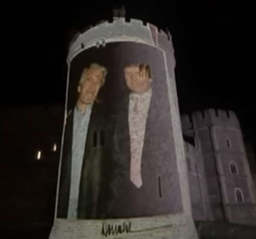Four men arrested after projecting images of Jeffrey Epstein, Prince Andrew, and Donald Trump onto...